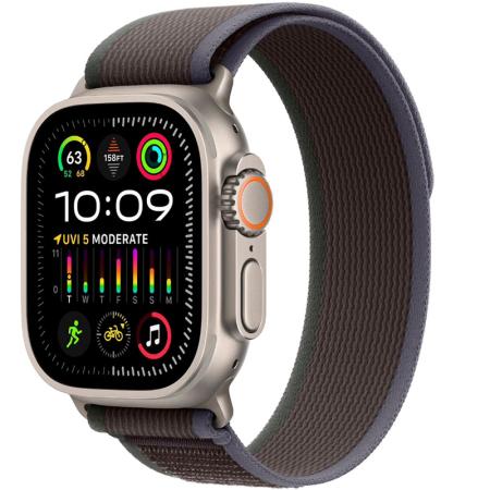 Apple Watch Ultra 2, 49мм, корпус из титана, ремешок Trail цвета «синий/чёрный»