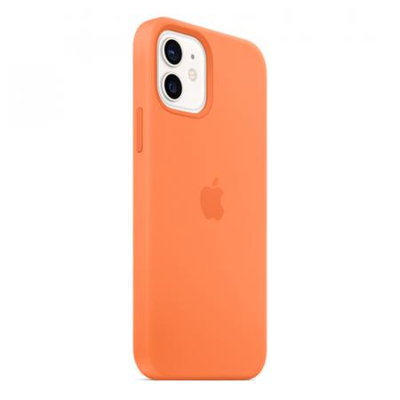 Силиконовый чехол MagSafe для iPhone 12 Pro/iPhone 12, цвет «кумкват», материал аксессуара приятен на ощупь, не выскальзывает из рук. Микрофибра на внутренней части чехла предусмотрена, чтоб защитить смартфон от появления царапин.
