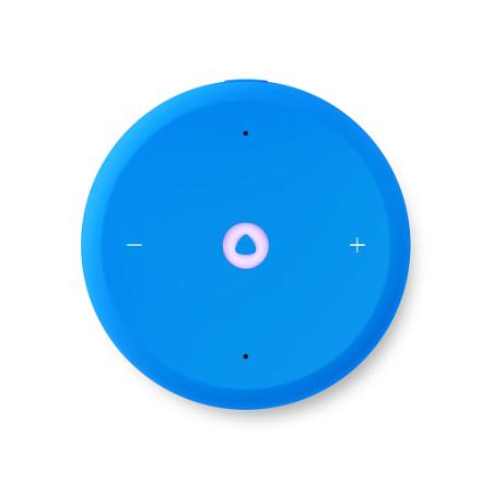 - Дизайн: колонка выполнена в современном и минималистическом стиле, прекрасно подойдёт к любому интерьеру. Синий цвет корпуса выделяет устройство, добавляя в пространство яркую нотку.
