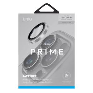 Защита объектива камеры стальной обод и сапфировое стекло UNIQ OPTIX PRIME IPHONE 16 Pro/ 16 Pro Max, серебро (SONIC SILVER)